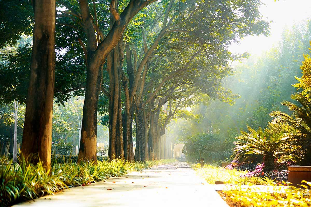 Beautiful landscapes all around Nambiar District 25 with over 80% open spaces, 5000+ native trees, and overlooking a large 42-acre rejuvenated lake make it more special & Elite.