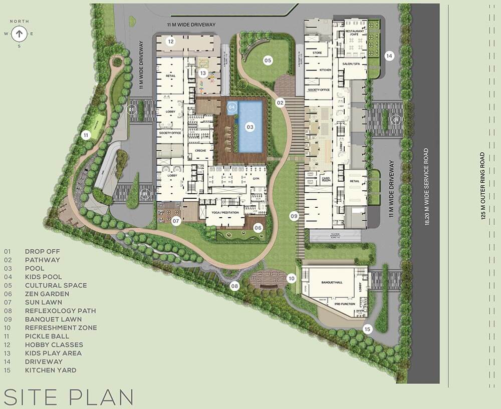 Amenities at The Line Narsingi include a fully equipped 20,000sft clubhouse, landscaped gardens, gymnasium, swimming pool, recreation rooms, outdoor sports courts, children’s play area, party hall, and meticulously planned with utmost importance to state-of-the-art 24/7 securities.